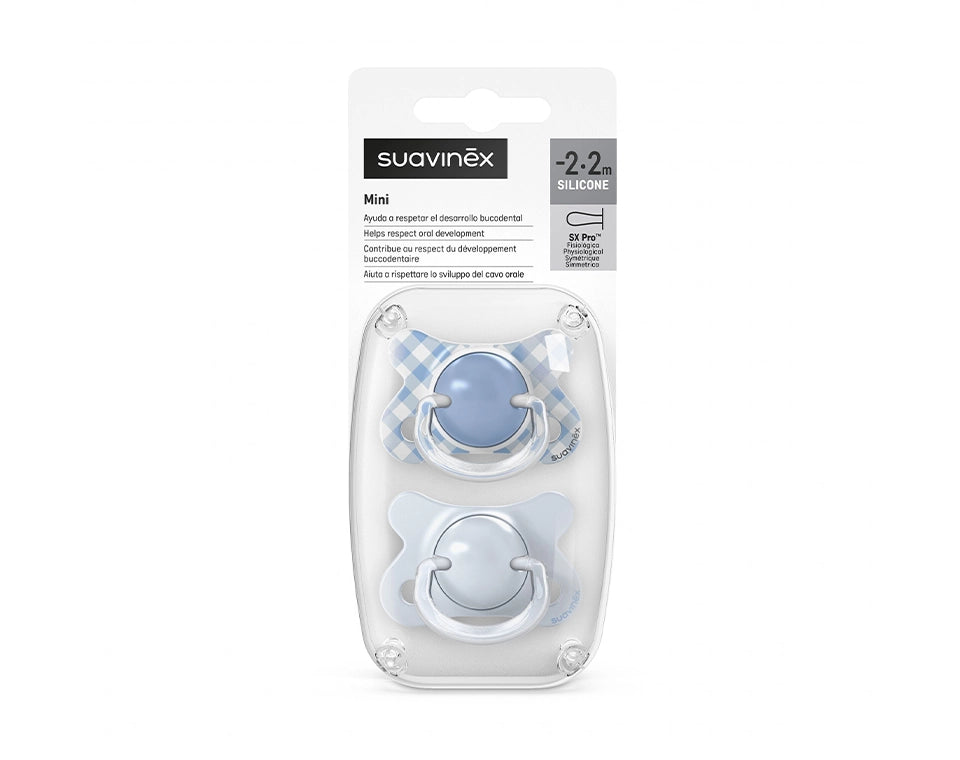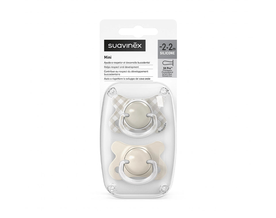 זוג מוצצי -2+2 SX PRO מיני, פותח ותוכנן במיוחד על ידי אורתודנטים ומומחים עבור הרגעים הראשונים של החיים, לניובורן ואף לפגים.