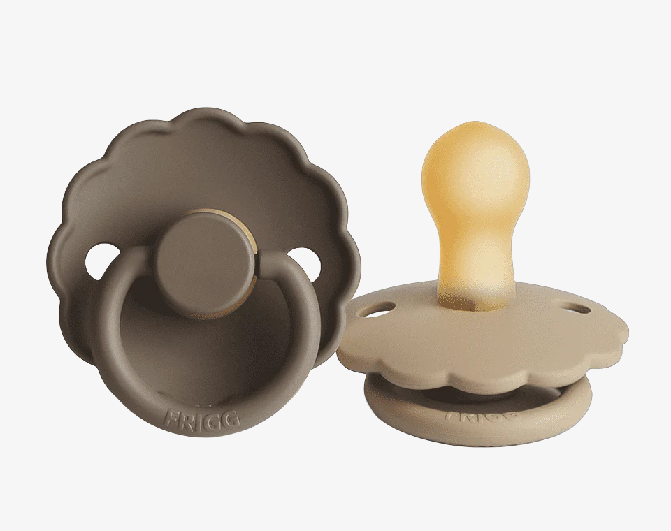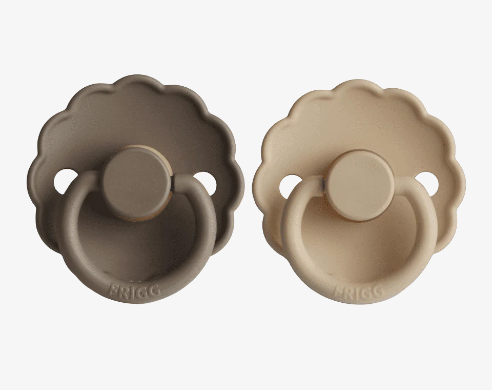 זוג מוצצי גומי מקולקציית DAISY מבית FRIGG עוצבו בקפידה בכדי לשמור על נוחות תינוקכם.
