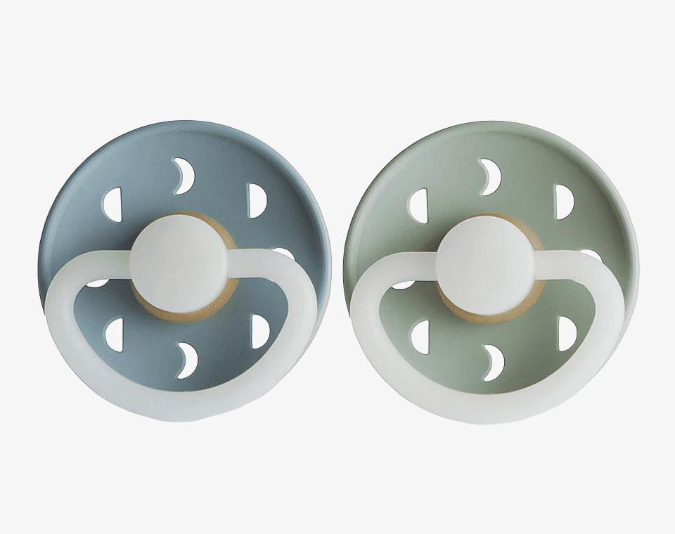 זוג מוצצי גומי MOON Night- Stone Blue/ Sage