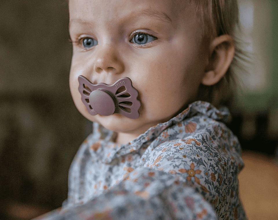 - קולקציית המוצצים של FRIGG עוצבו במיוחד לנוחות התינוק שלך- מסגרת הפלסטיק שלו הפונה כלפי חוץ ושומרת על מרחק מעור הפנים של התינוק, ומאפיינים כמו חורי אוורור וידית בטיחות שומרים על התינוק ובטיחותו.