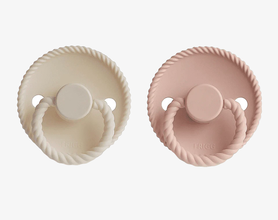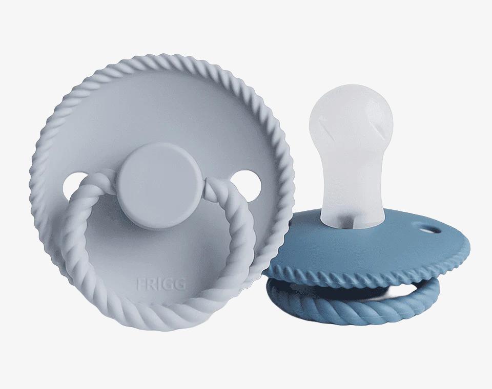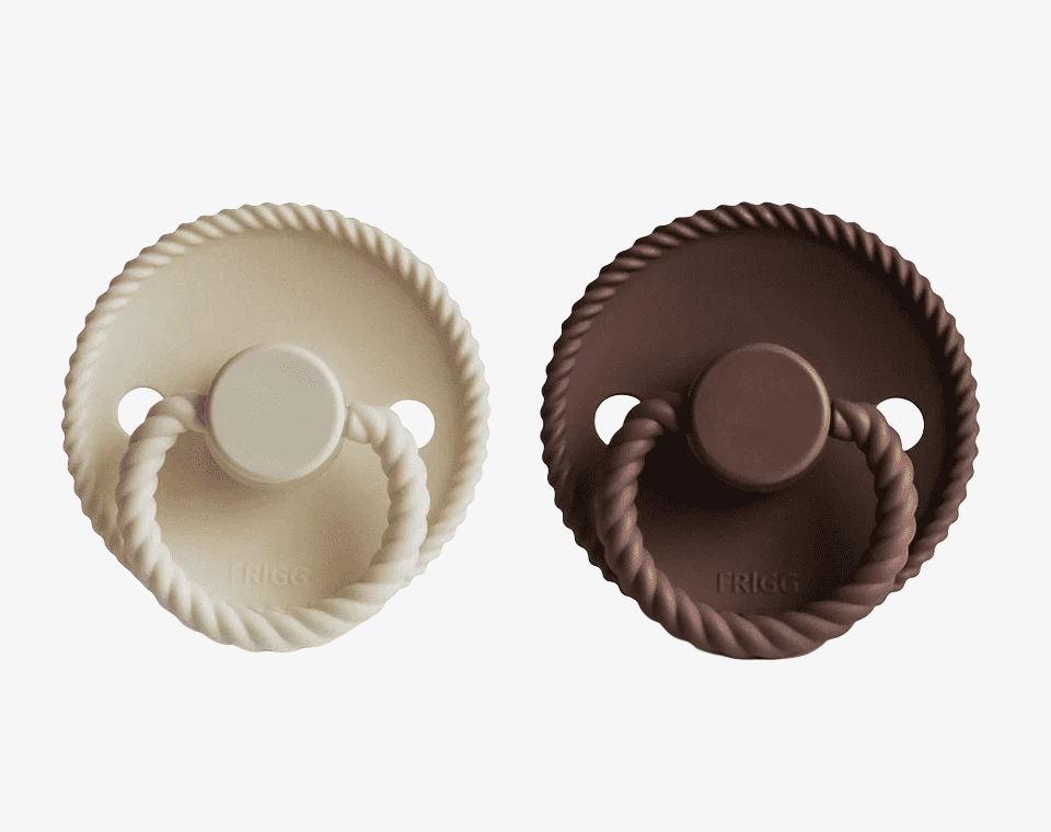 זוג מוצצי סיליקון מקולקציית ROPE מבית FRIGG בעלי עיצוב ייחודי, עוצבו בקפידה בכדי לשמור על נוחות תינוקכם.