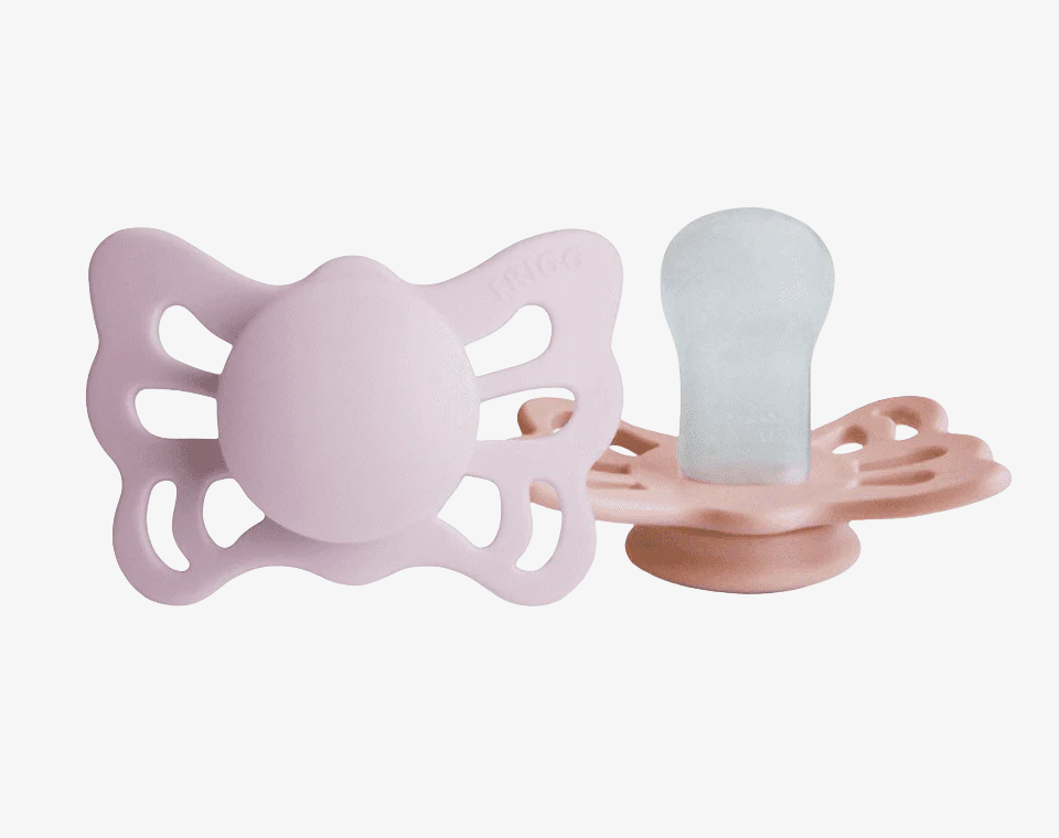- מוצצי FRIGG Butterfly עוצבו בקפידה כדי להעניק לתינוקך נוחות מרבית ובטיחות מקסימלית. הם כוללים פטמה משודרגת מסוג SilkySoft™ – רכה במיוחד למגע, ומנגנון חדשני מסוג Click-lock להבטחת סגירה בטוחה.