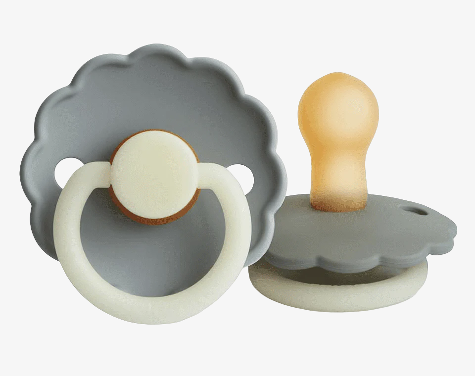 זוג מוצצי גומי מקולקציית DAISY NIGHT מבית FRIGG עוצבו בקפידה בכדי לשמור על נוחות תינוקכם.