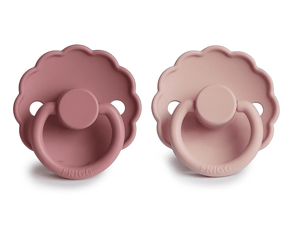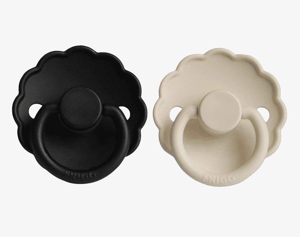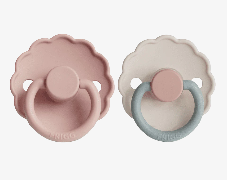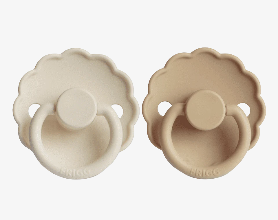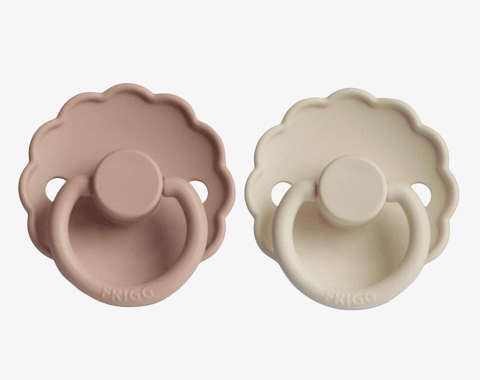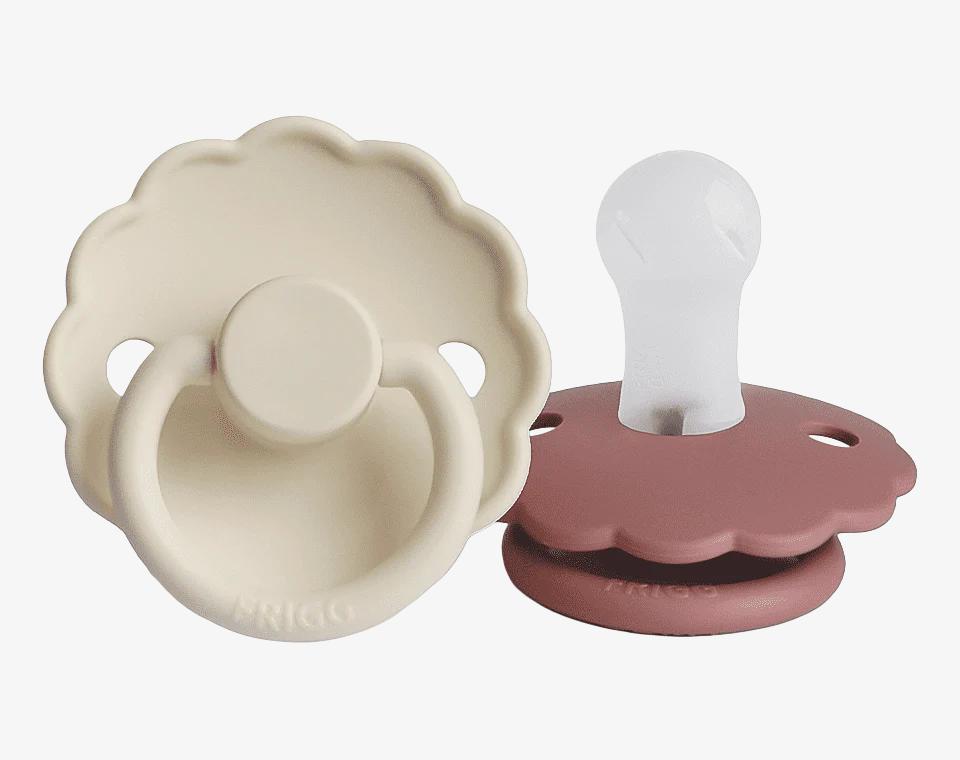 זוג מוצצי סיליקון מקולקציית DAISY מבית FRIGG עוצבו בקפידה בכדי לשמור על נוחות תינוקכם.