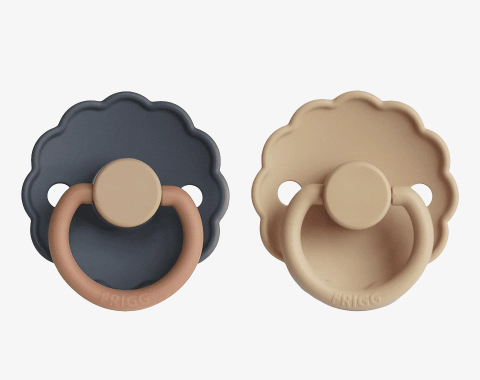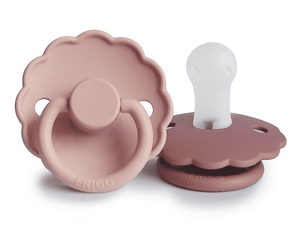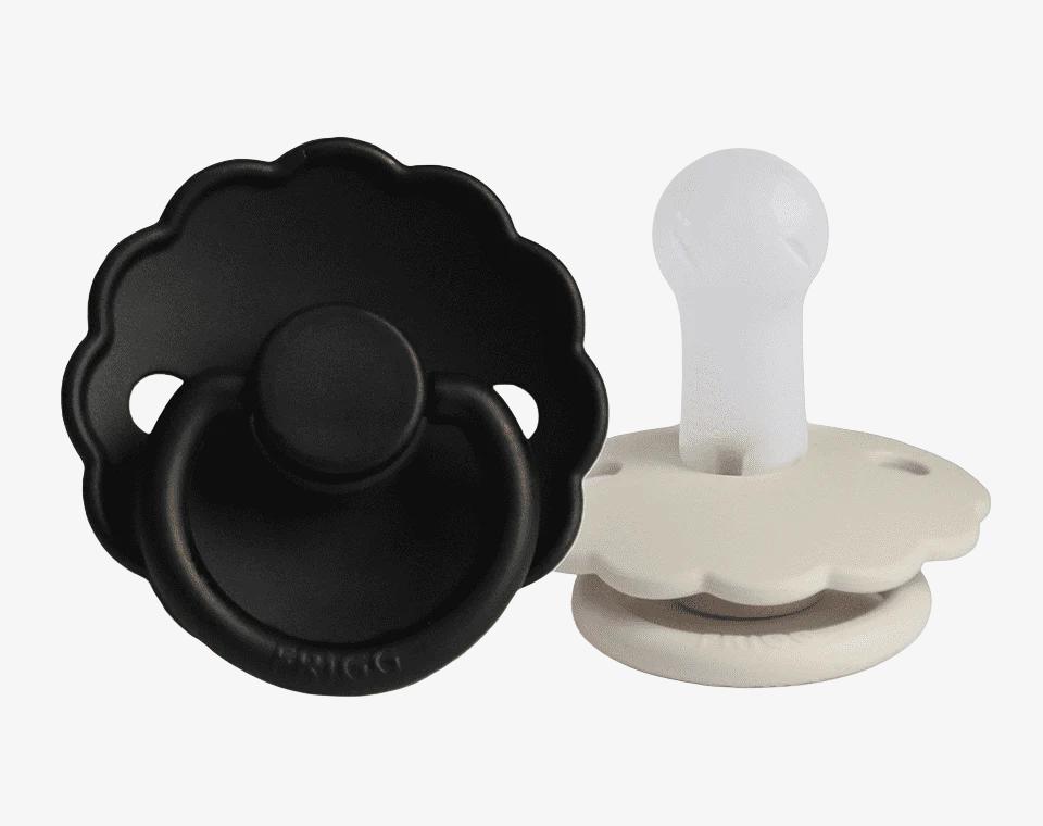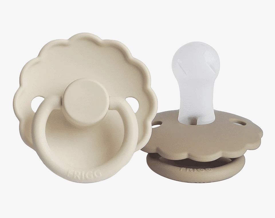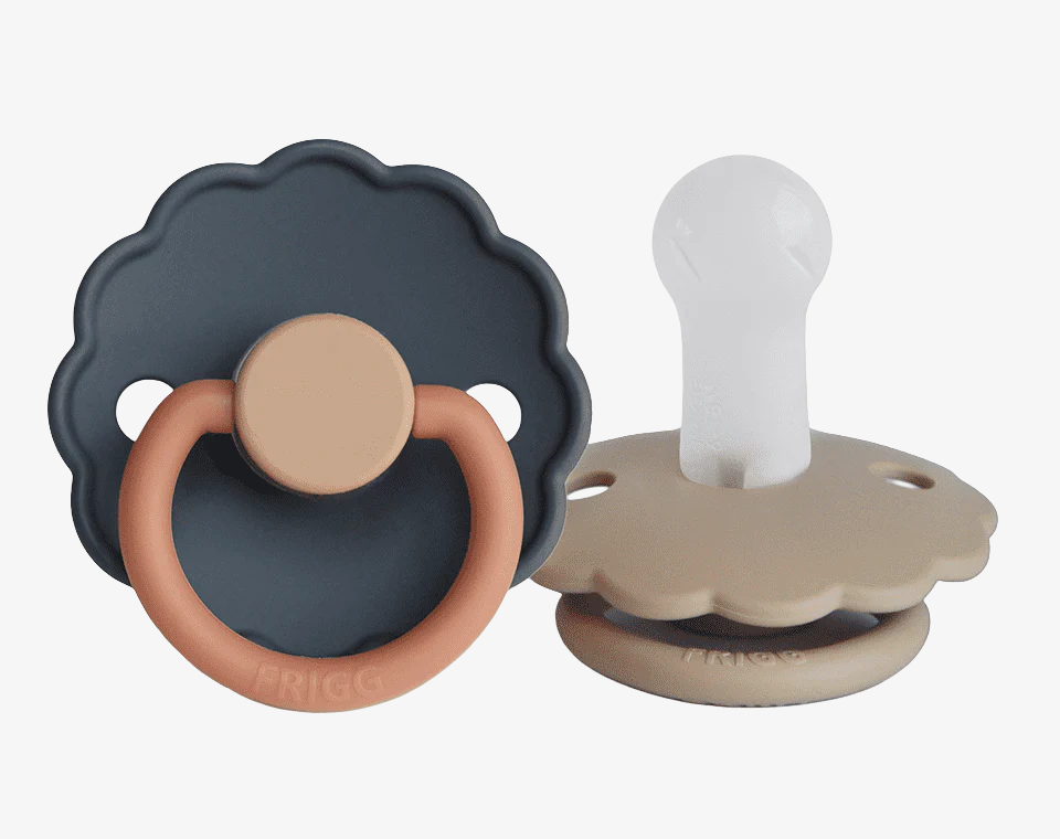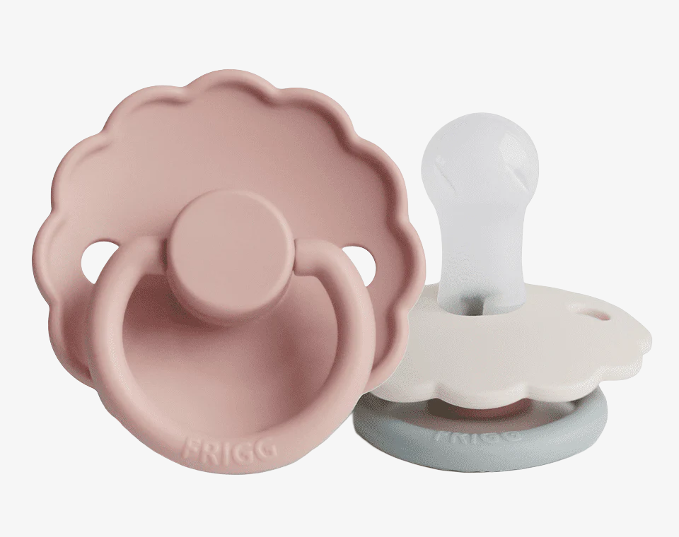 זוג מוצצי סיליקון מקולקציית DAISY מבית FRIGG עוצבו בקפידה בכדי לשמור על נוחות תינוקכם.