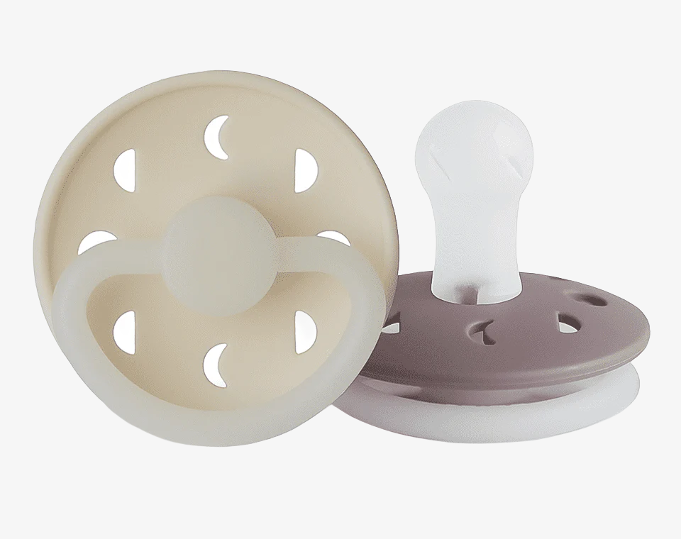 זוג מוצצי סיליקון מקולקציית MOON NIGHT מבית FRIGG בעלי עיצוב ייחודי, עוצבו בקפידה בכדי לשמור על נוחות תינוקכם.