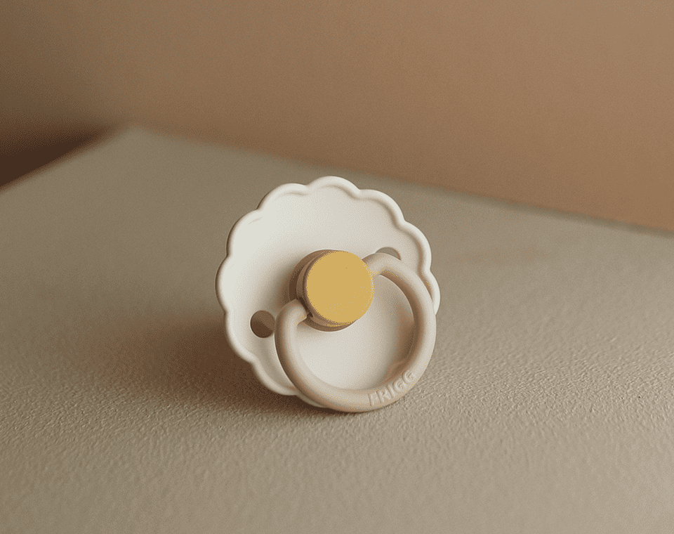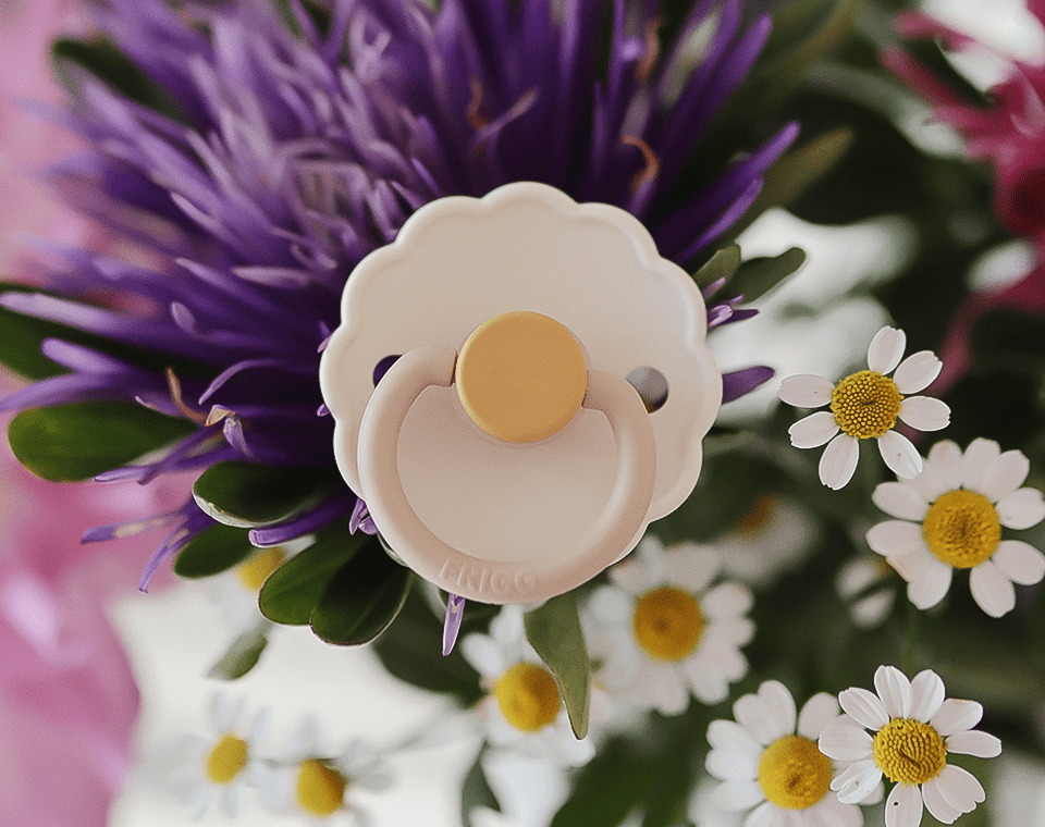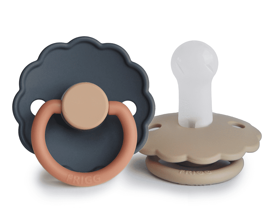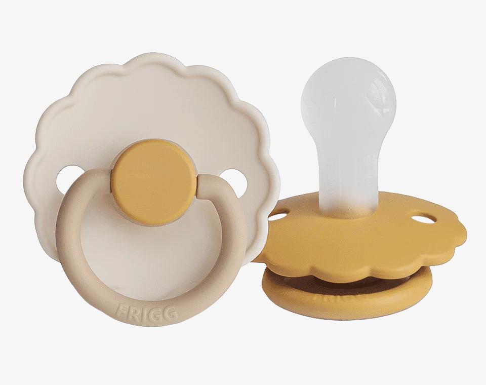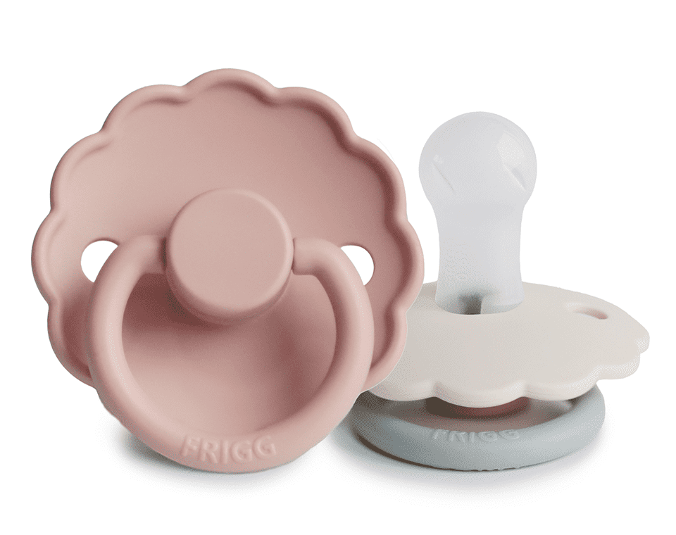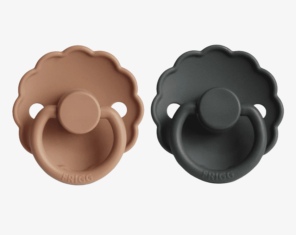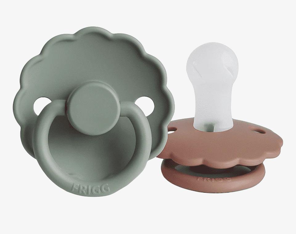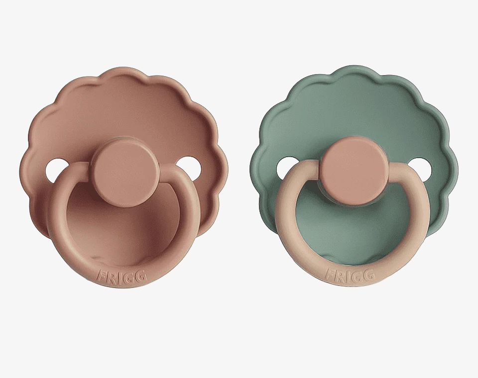 זוג מוצצי סיליקון מקולקציית DAISY מבית FRIGG עוצבו בקפידה בכדי לשמור על נוחות תינוקכם.