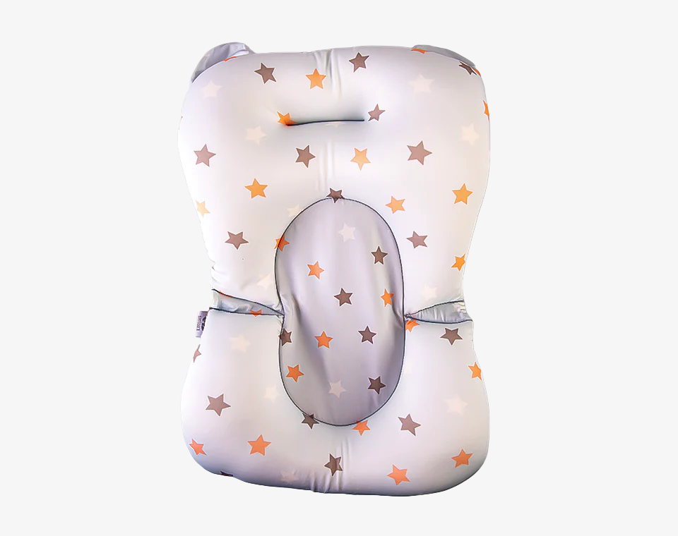 כרית צפה לאמבטיה בצבע לבן עם כוכבים בצבע אפור וכתום