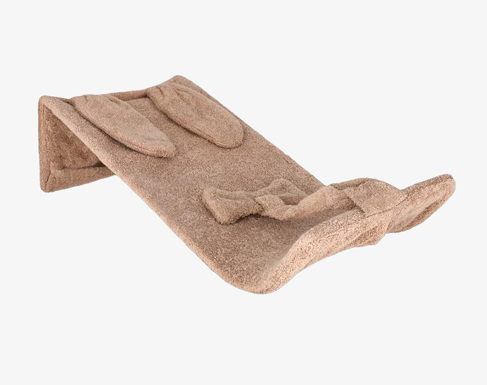 מושב תמיכה מעוצב לאמבטיה מבד מגבת רך ונעים, לתחושת נוחות וביטחון.