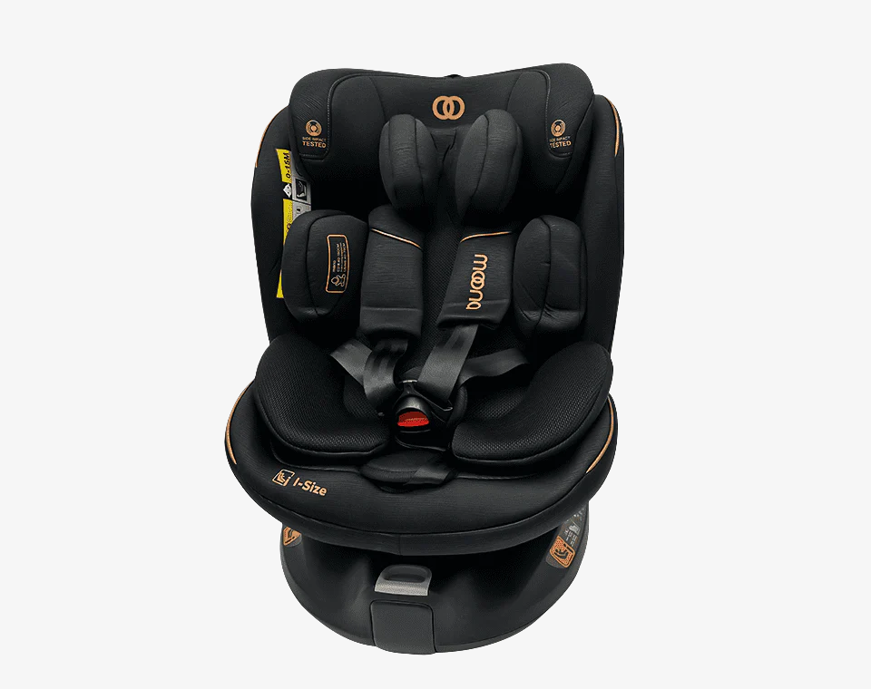 כיסא בטיחות דגם C018 מסתובב 360 מעלות, מבית המותג moona עומד בתקן I-SIZE המחמיר עגינה עם חיבורי isofix