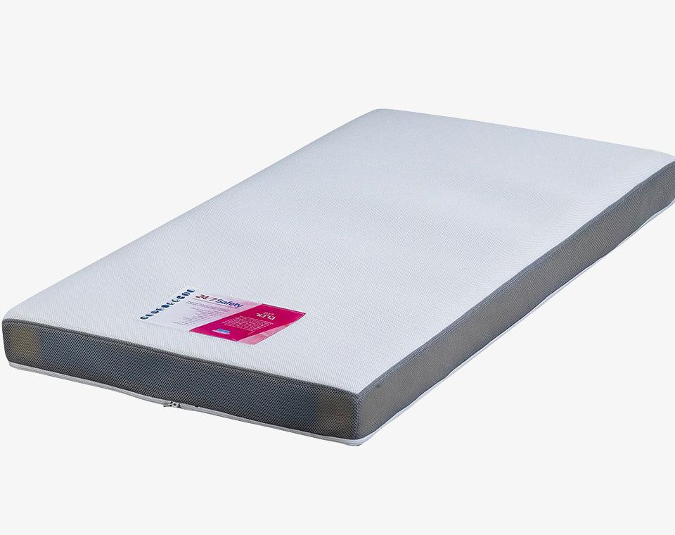 מזרן דו-צדדי מסדרת 24/7 Safety של בייבי עמינח, עם תמיכת קצה ובד נושם ועמיד לנוזלים, לשינה בטוחה ונעימה בכל שלב גדילה.