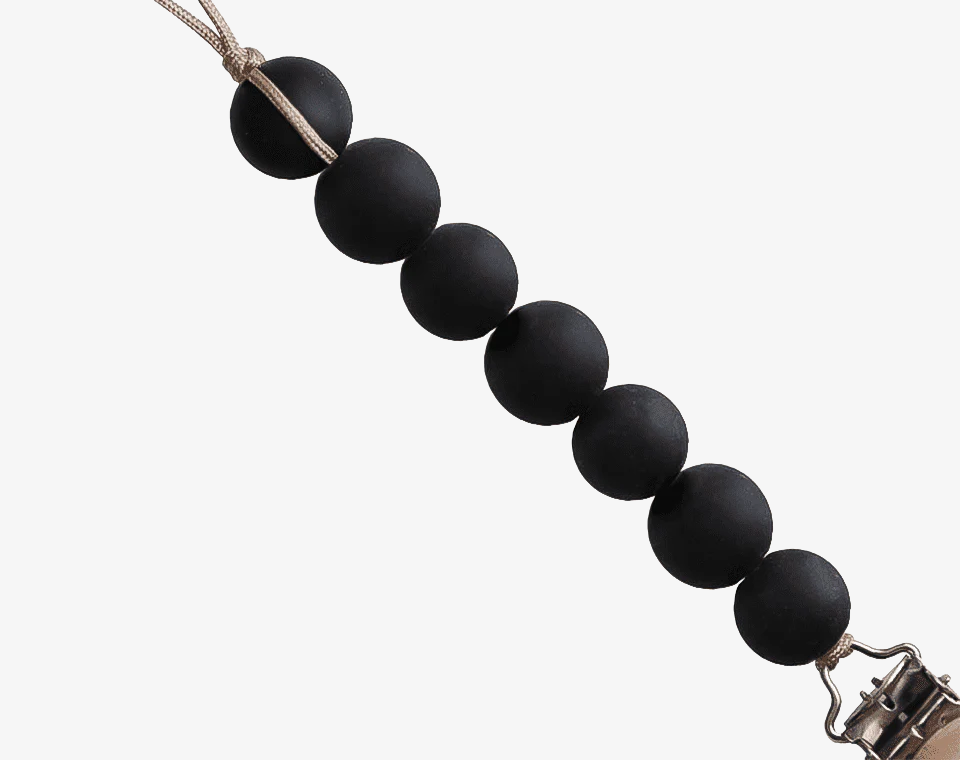 - קליפס מעוצב בחרוזי סיליקון בצבעים שונים, הוא כולל אבזם סיליקון מעץ מלאכותי, וחרוזים 100% סיליקון איכותי, ללא BPA, ללא PVC, ללא פתלטים וללא ריח.