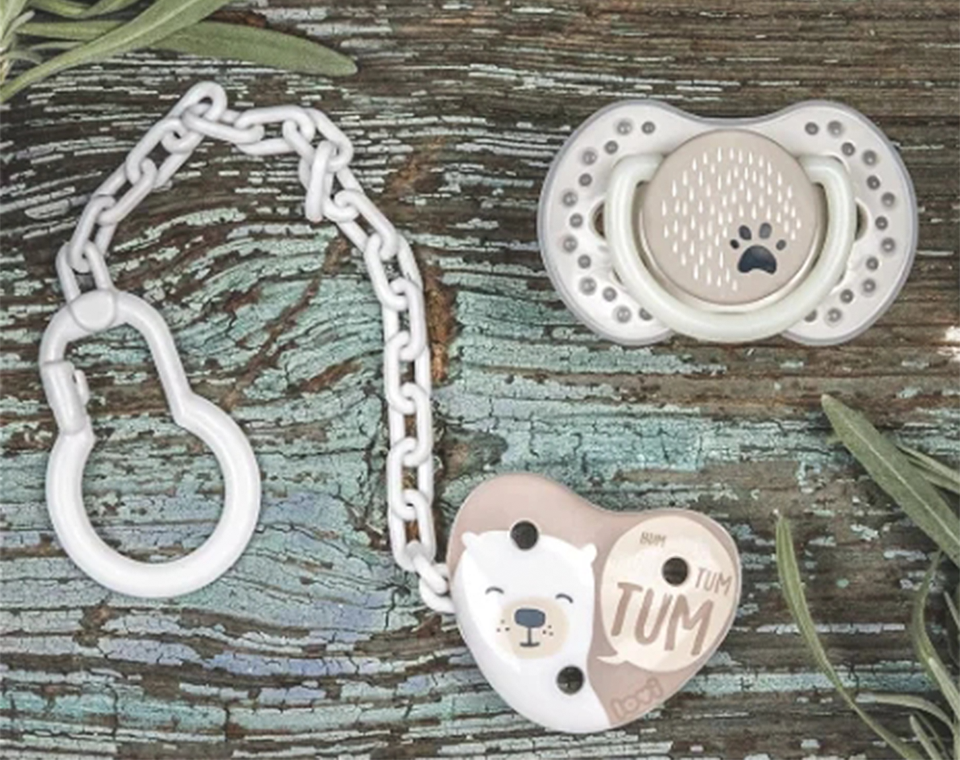 מחזיק למוצץ מבית לאבי Lovi הנתפס בקלות על הבגד.