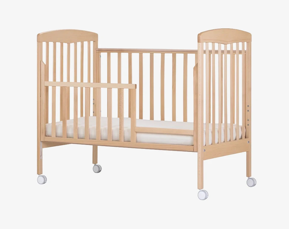 מיטת לוצ'יה מבית רהיטי סגל - מיטת תינוק בעיצוב קלאסי ונקי, עשויה עץ בוק מלא, בטיחותית ומותאמת לסטנדרטים בינלאומיים.