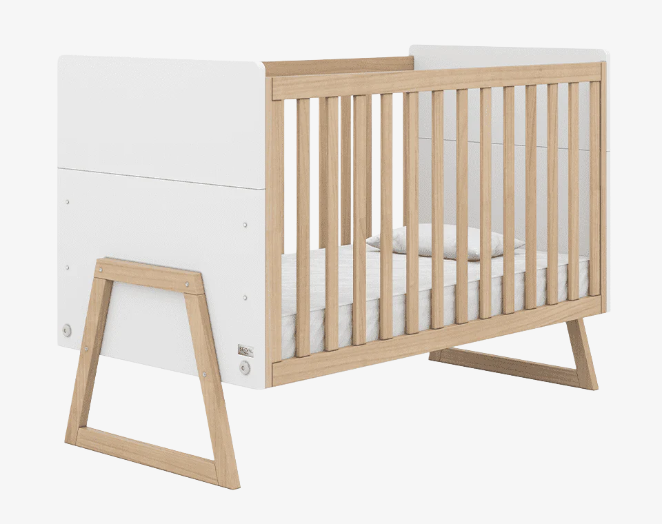 מיטת תינוק רום בעיצוב מודרני עם קווים ישרים, עשויה עץ בוק אירופאי מלא בשילוב MDF איכותי. מיוצרת באיטליה ומציעה מראה נקי, מינימליסטי ועמידות גבוהה לאורך שנים.
