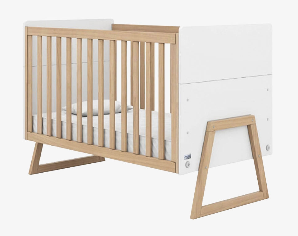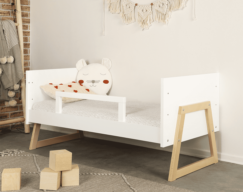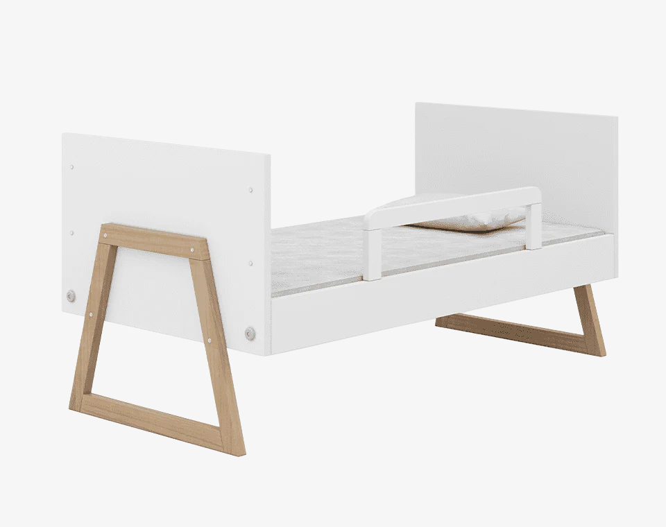 מיטה מודרנית עשויה עץ מלא, עם 3 גבהים למזרן ואפשרות להפיכה למיטת מעבר (ברכישת מעקה טודלר נפרד) מעוצבת, בטוחה ומתאימה לאורך זמן.