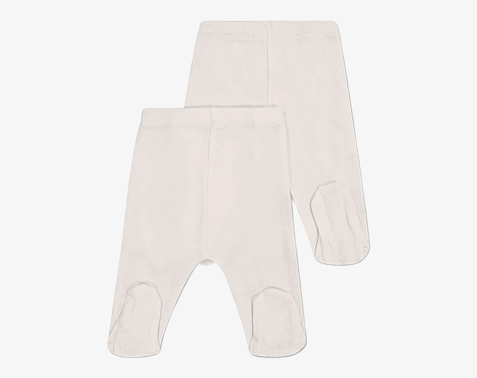 - זוג מכנסיים ארוכים ולבנים מבד כותנה עם רגליות.