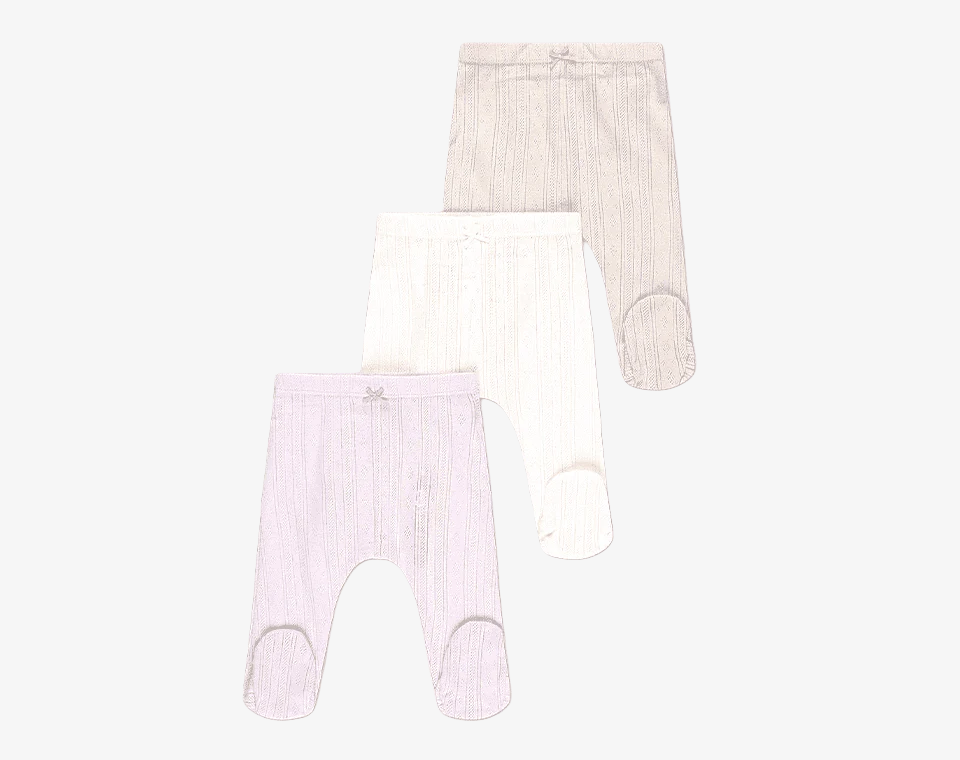 מארז שלישיית רגליות פוינטל עם רגליות 100% כותנה רכה. הצבעוניות של הליין כוללת פסטלים אופנתיים המשתלבים בקלות במלתחה, טקסטורת הפוינטל משווה לפריטים מראה מתוחכם.