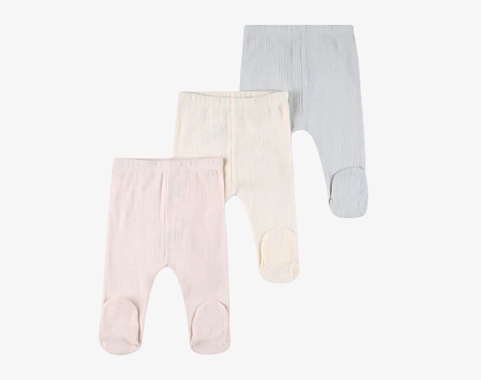 - שלישיית מכנסיים עם רגליות, גזרה המומלצת להלבשת תינוקות רכים.