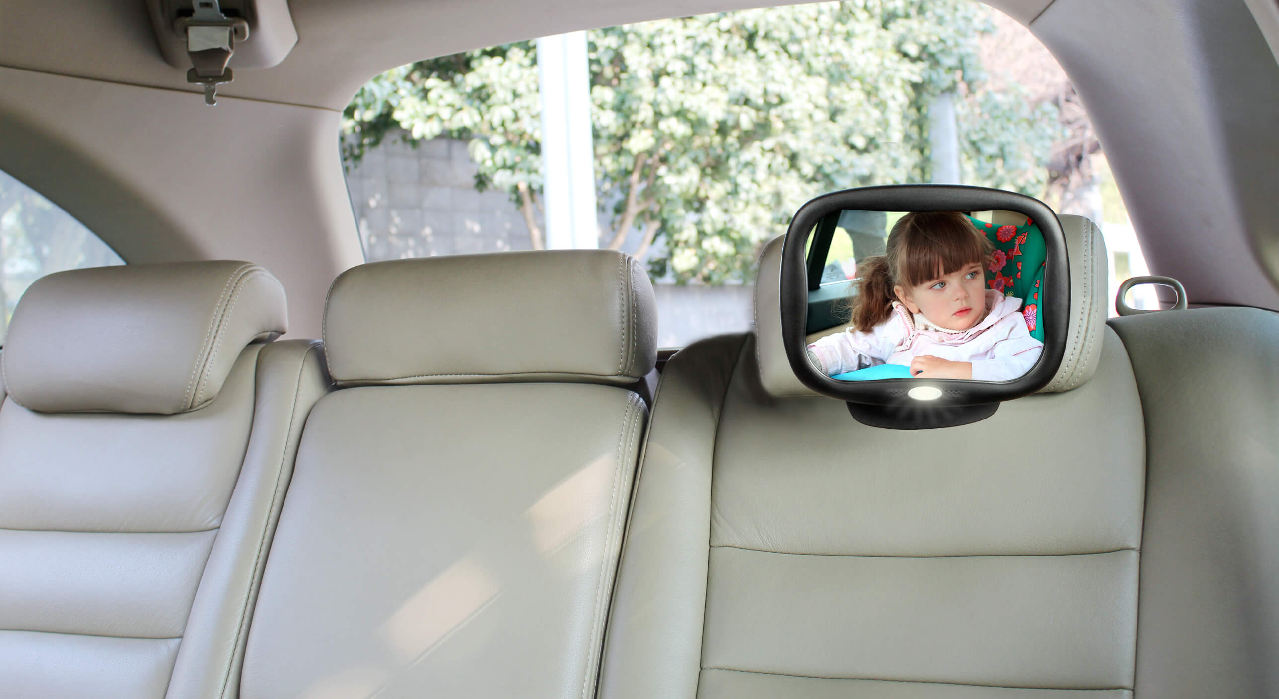 מראת לד קטנה נצמדת לרכב. מראה הנצמדת בקלות לחלון הרכב הקדמי או האחורי ומתכווננת במגוון זוויות לבטיחות נוספת של הפעוט, החגור בכסא הבטיחות במושב האחורי, בנוסף למראה המקורית.