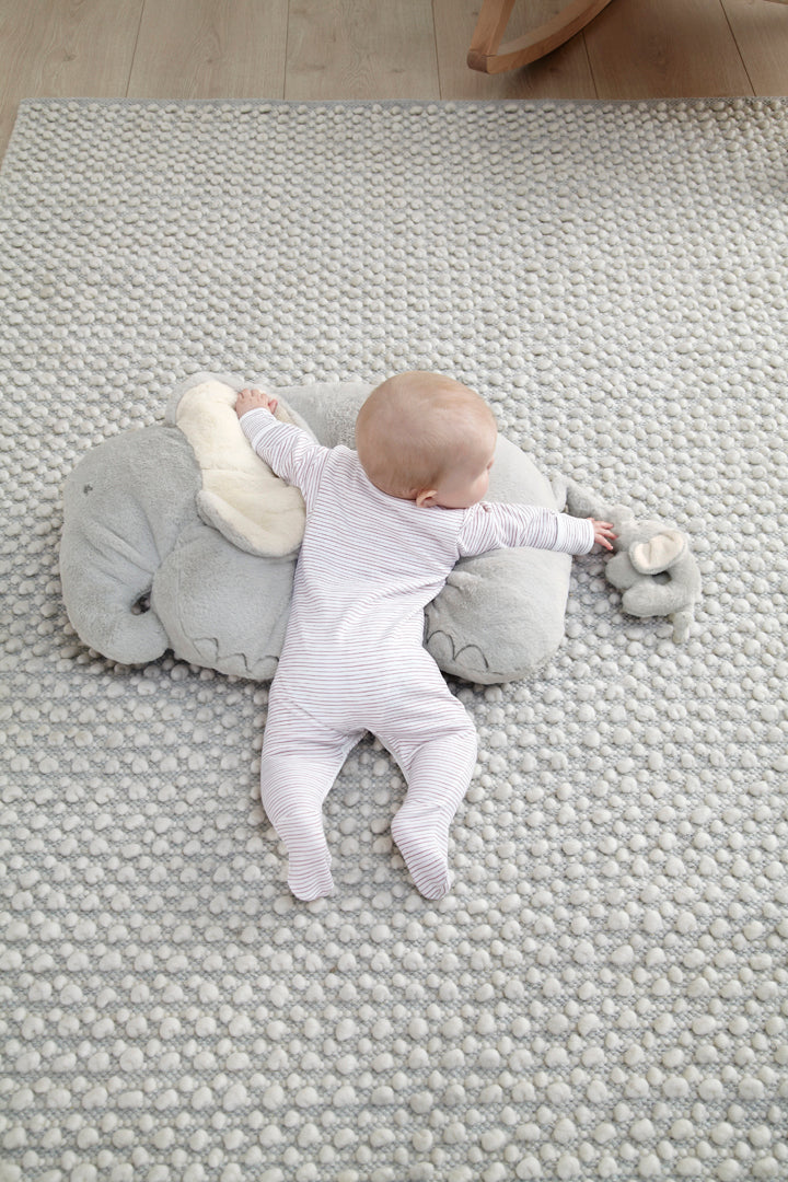 כרית הפעילות פיל ענק לתינוק נועד לעזור לתינוק בתרגילי זמן הבטן שלו. מקום רך ומרופד לשחק ולהתפתח בו. תומך בהתפתחות השרירים החושים של התינוק.