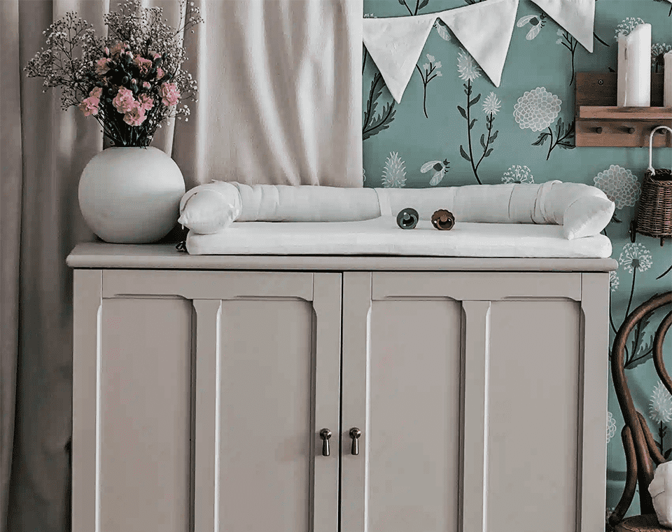 - משטח החתלה עם מגן ראש מבית Nino, עשוי תערובת פשתן.