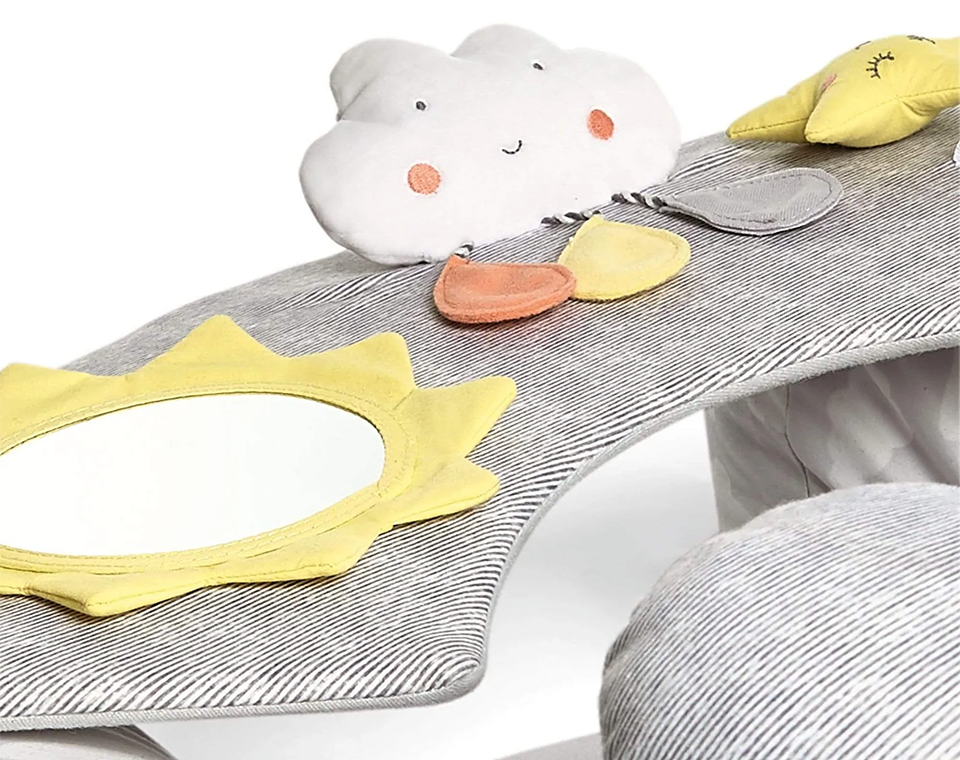 כרית התפתחות משולבת מאפשרת לתינוק לשבת בנוחות להנות ולפתח את חושיו. עשוי מבדים רכים במיוחד עם עיצוב צבעוני עז