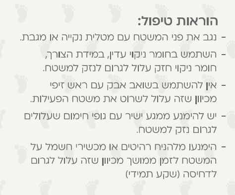 בעל קיפול נוח וקומפקטי וכולל תיק נשיאה, מידות המשטח- 150/200 ס"מ, עובי- 2 ס״מ.
