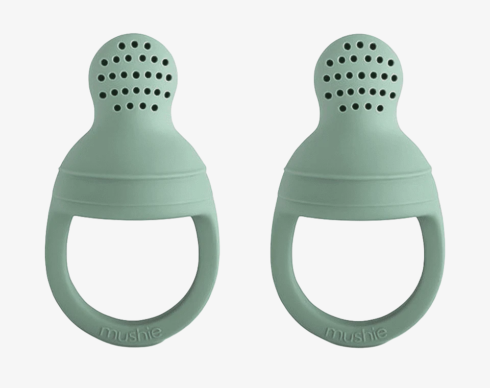 הכירו את הדרך הבטוחה, הנקייה והמהנה להכיר לתינוקכם טעמים חדשים! זוג נגיסוני הסיליקון של Mushie מעוצבים במיוחד ללמידת אכילה עצמאית – עם ידית נוחה לאחיזה, עיצוב רך אך עמיד, וחורים קטנים שמשחררים בעדינות את המזון.