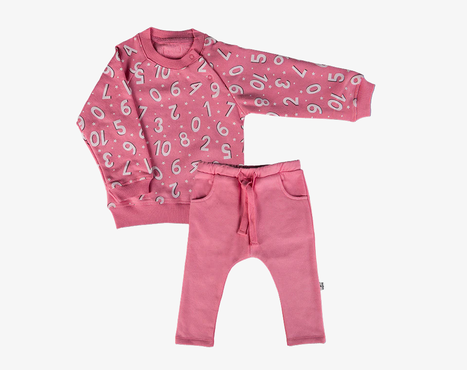 חליפת חורף מושלמת של BooBee , הכוללת חולצה ומכנס בצבע ורוד עם מספרים , עשויה מ - 80% כותנה 20% פוליאסטר