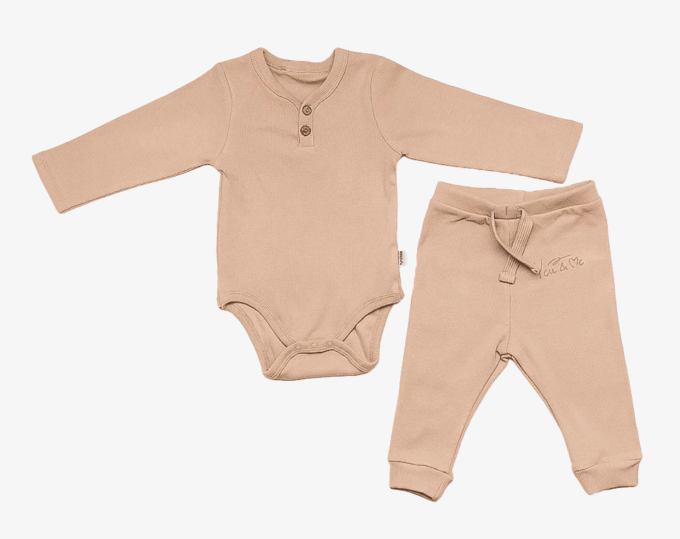 סט בגד גוף ומכנס מבד ריב רך ומלטף מבית המותג Boobee