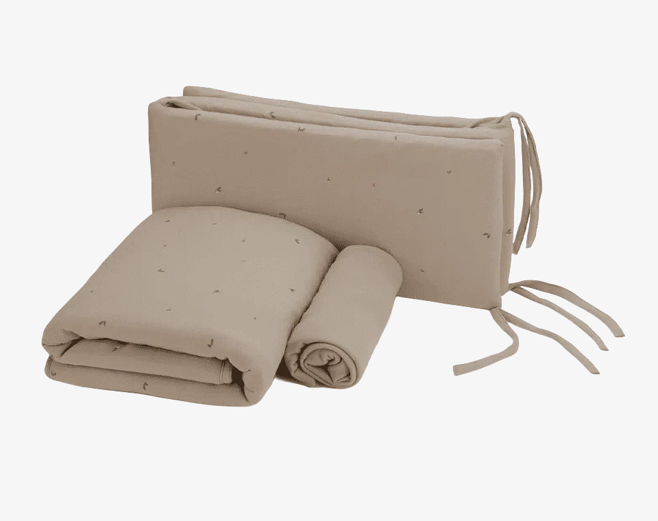 הסט מכיל: סדין לעריסה, מגן ראש מתכבס, שמיכה רב עונתית.