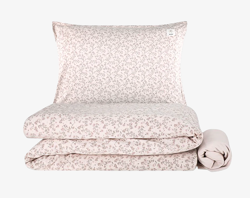 סט מצעים למיטת מעבר Bloom & Grid- ורוד בהיר מודפס