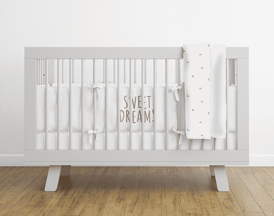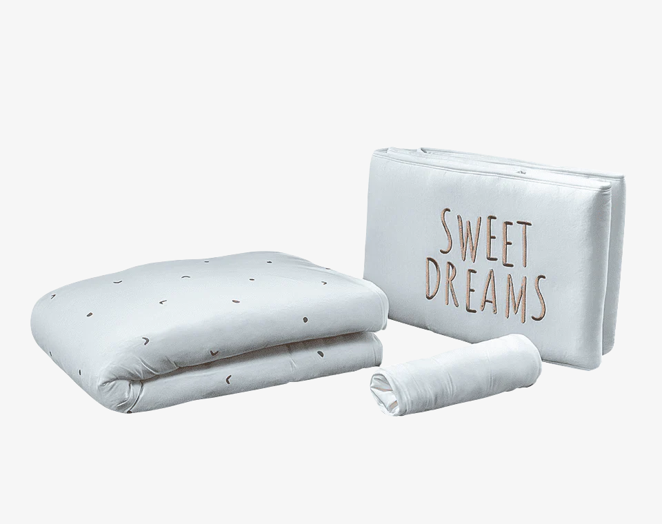 סט מצעים למיטת תינוק לבן דפוס סהר