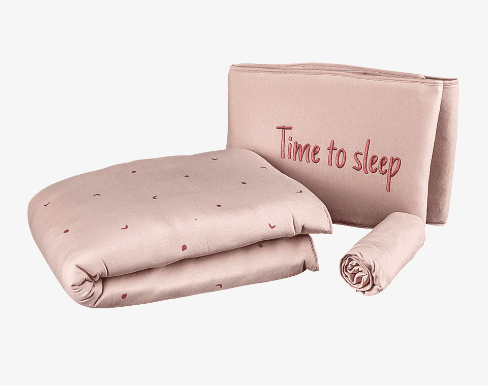 סט מצעים למיטת תינוק ורוד דפוס סהר