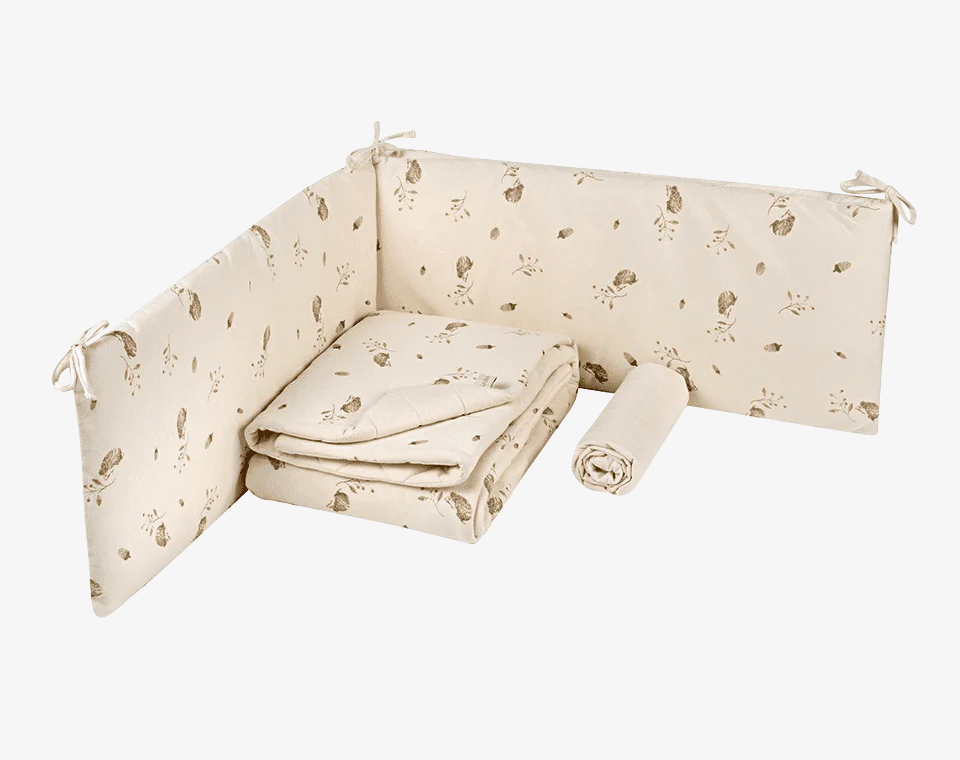 הסט מורכב משלושה חלקים: שמיכה, מגן ראש וסדין.