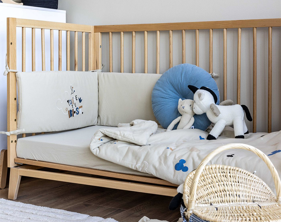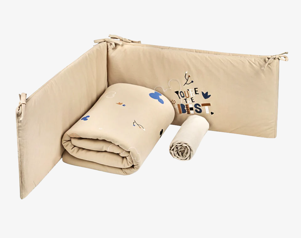 סט מצעים למיטת תינוק עשוי מבד רך ונעים 100% כותנה.