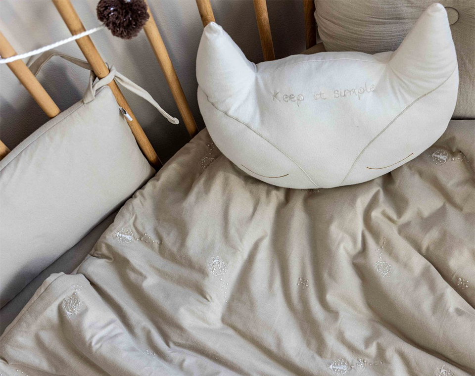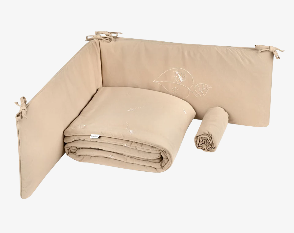 סט מצעים למיטת תינוק עם רקמה EMB חיפושית