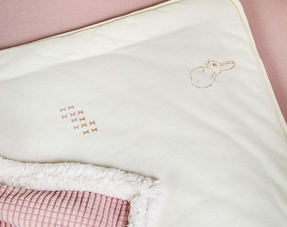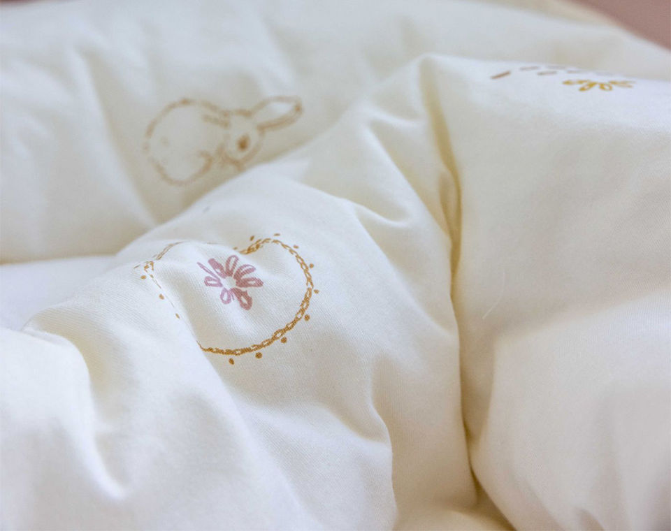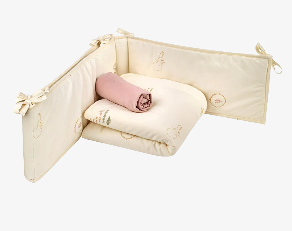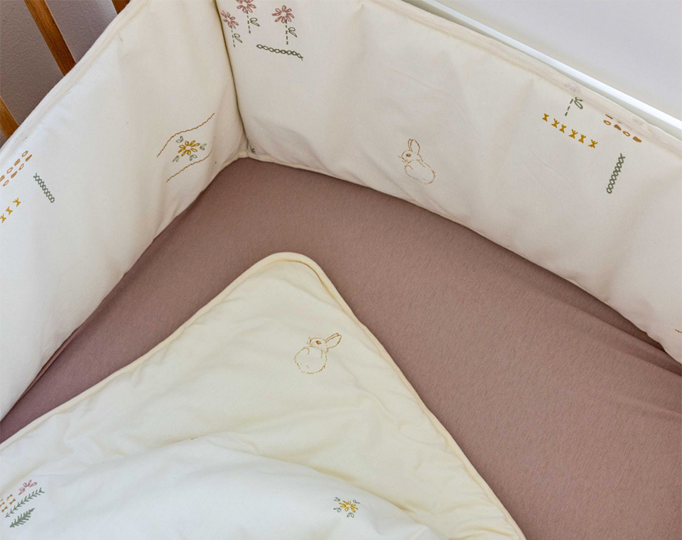 סט מצעים למיטת תינוק עשוי מבד רך ונעים 100% כותנה.