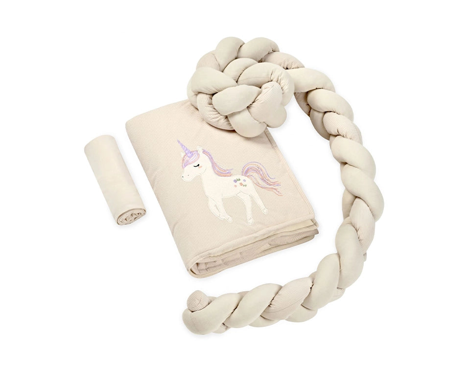 סט מצעים לעריסה עם נחשוש קלוע קורדורוי Unicorn