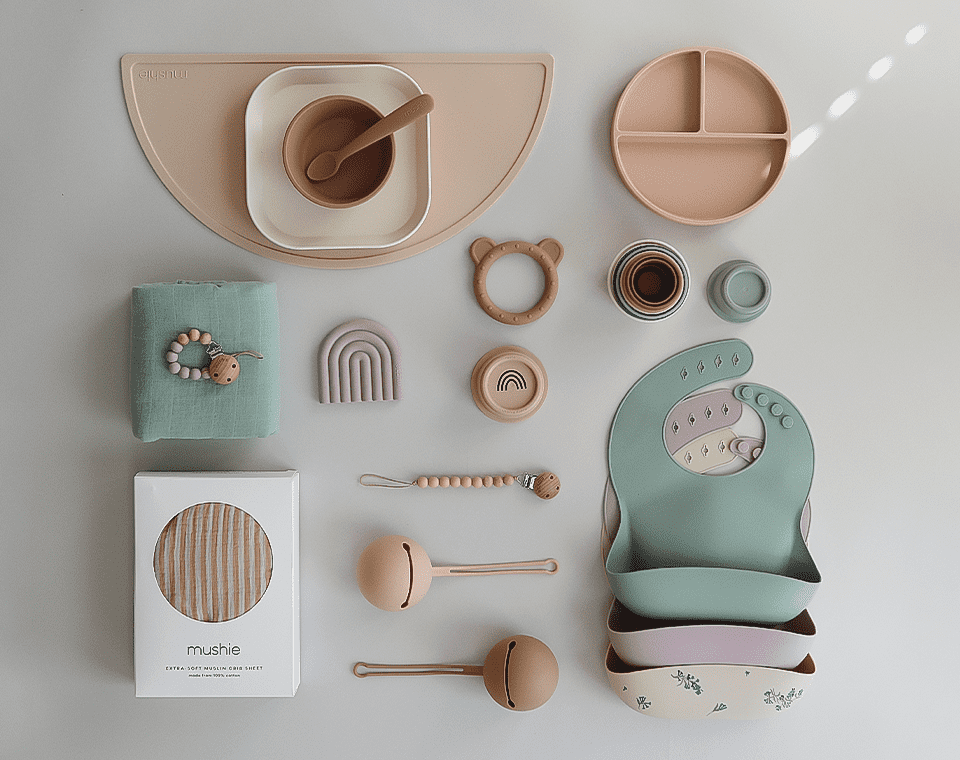 סינר בד סופג רוק ופליטות, מעולה לשלב היניקה. סינר סיליקון נועד לארוחות, קל לניקוי, עם כיס לתפיסת אוכל.