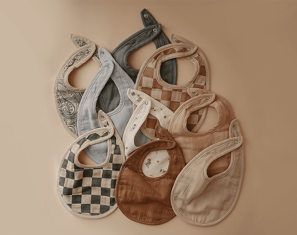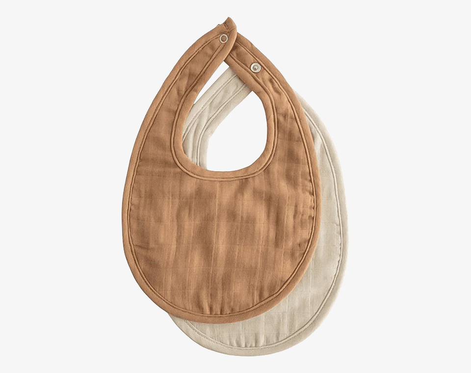 זוג סינרי הטטרה הרכים והנעימים מבית Mushie רב-שכבתיים הם אביזר חובה לכל ארון בגדים של תינוק