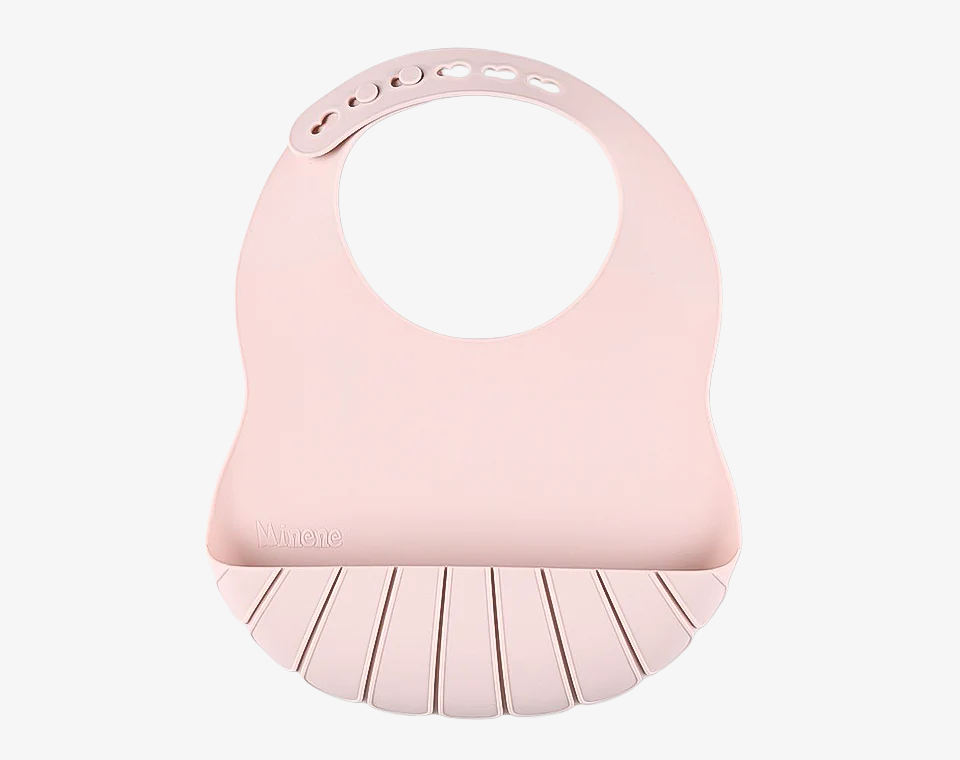 סינר סיליקון איכותי עם סגירת כפתור מתכווננת וכיס לאיסוף שאריות מזון.