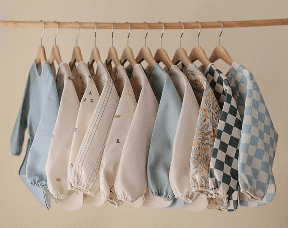 סינר עם שרוול מצוין לשלב האכילה העצמאית - הוא מכסה את כל פלג הגוף העליון ומגן גם על השרוולים של הבגד. מושלם לארוחות מבולגנות ומשחקי יצירה. סינר בלי שרוול נוח יותר לשימוש יומיומי, ריור או טעימות קלות – במיוחד בגיל הרך.