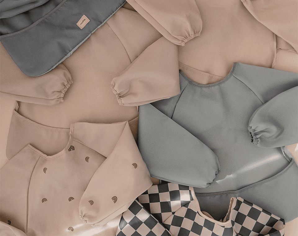 סינר עם שרוול מצוין לשלב האכילה העצמאית - הוא מכסה את כל פלג הגוף העליון ומגן גם על השרוולים של הבגד. מושלם לארוחות מבולגנות ומשחקי יצירה. סינר בלי שרוול נוח יותר לשימוש יומיומי, ריור או טעימות קלות – במיוחד בגיל הרך.