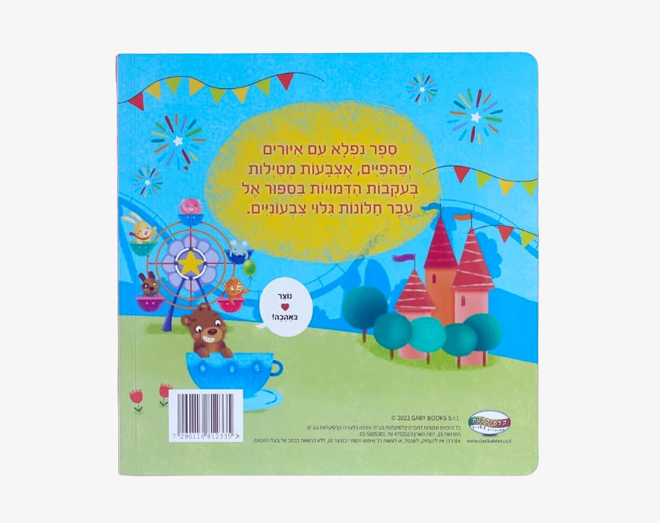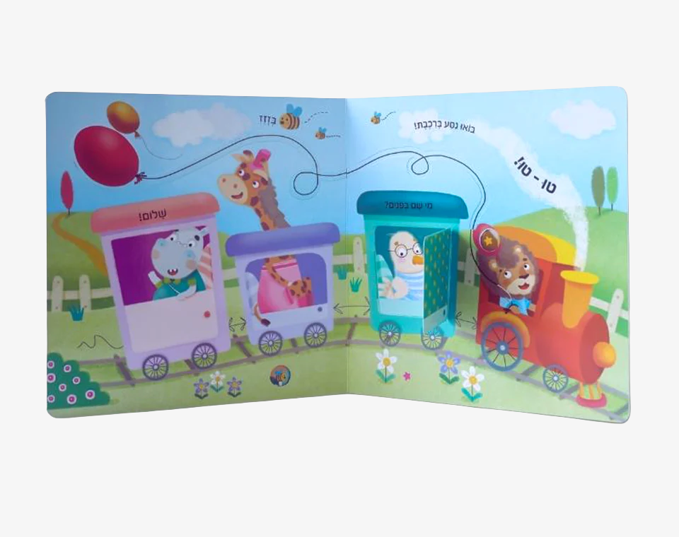 ספר נפלא עם איורים יפיפיים, אצבעות מטיילות בעקבות הדמויות בסיפור אל עבר חלונות גילוי צבעוניים.