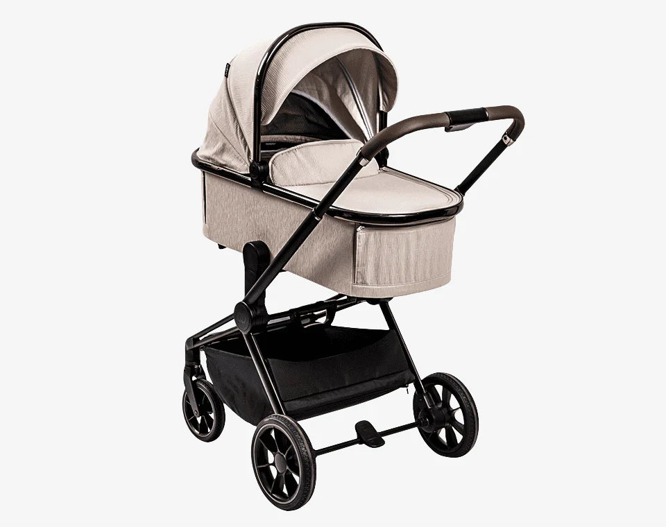 עגלה משולבת עם סל שכיבה וטיולון, כוללת שלדת אלומיניום קלה, קיפול ייחודי ביד אחת גם עם ונגד כיוון הנסיעה, גלגלי PU עם שיכוך זעזועים וסל שכיבה מרווח עם פתחי אוורור. חוויית טיול חלקה, בטוחה ונעימה – כבר מהיום הראשון.
