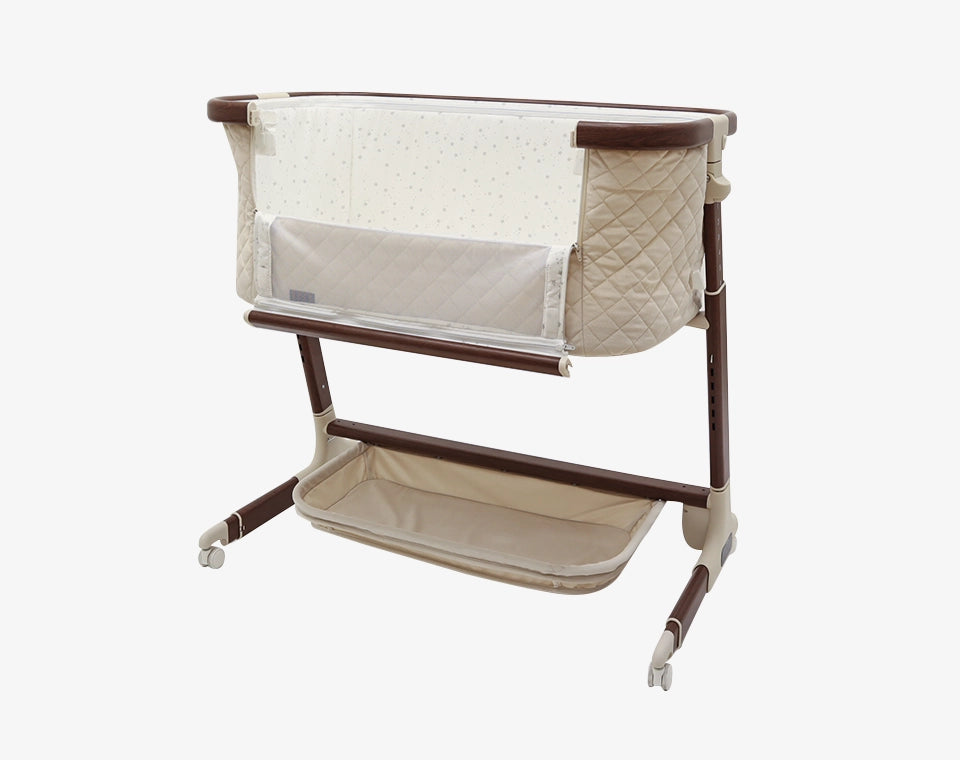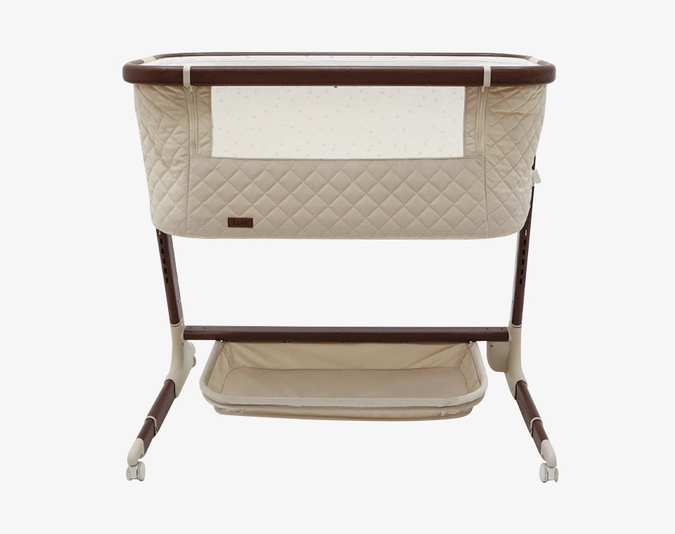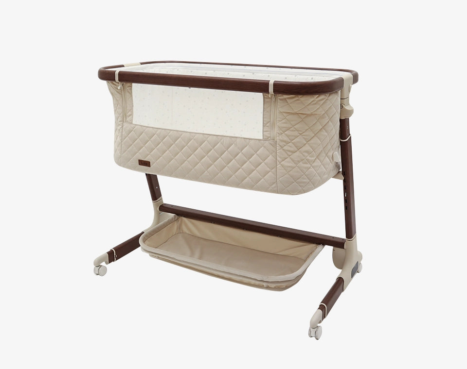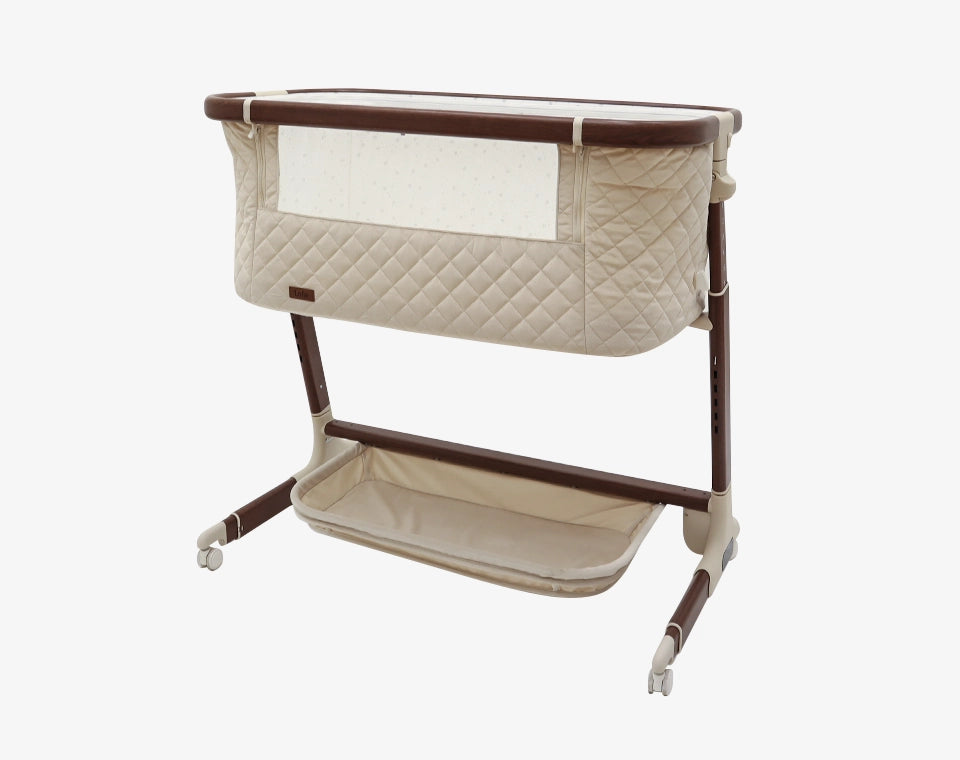 עריסה נצמדת ומתנדנדת Lola- בז׳ קטיפה מסגרת עץ