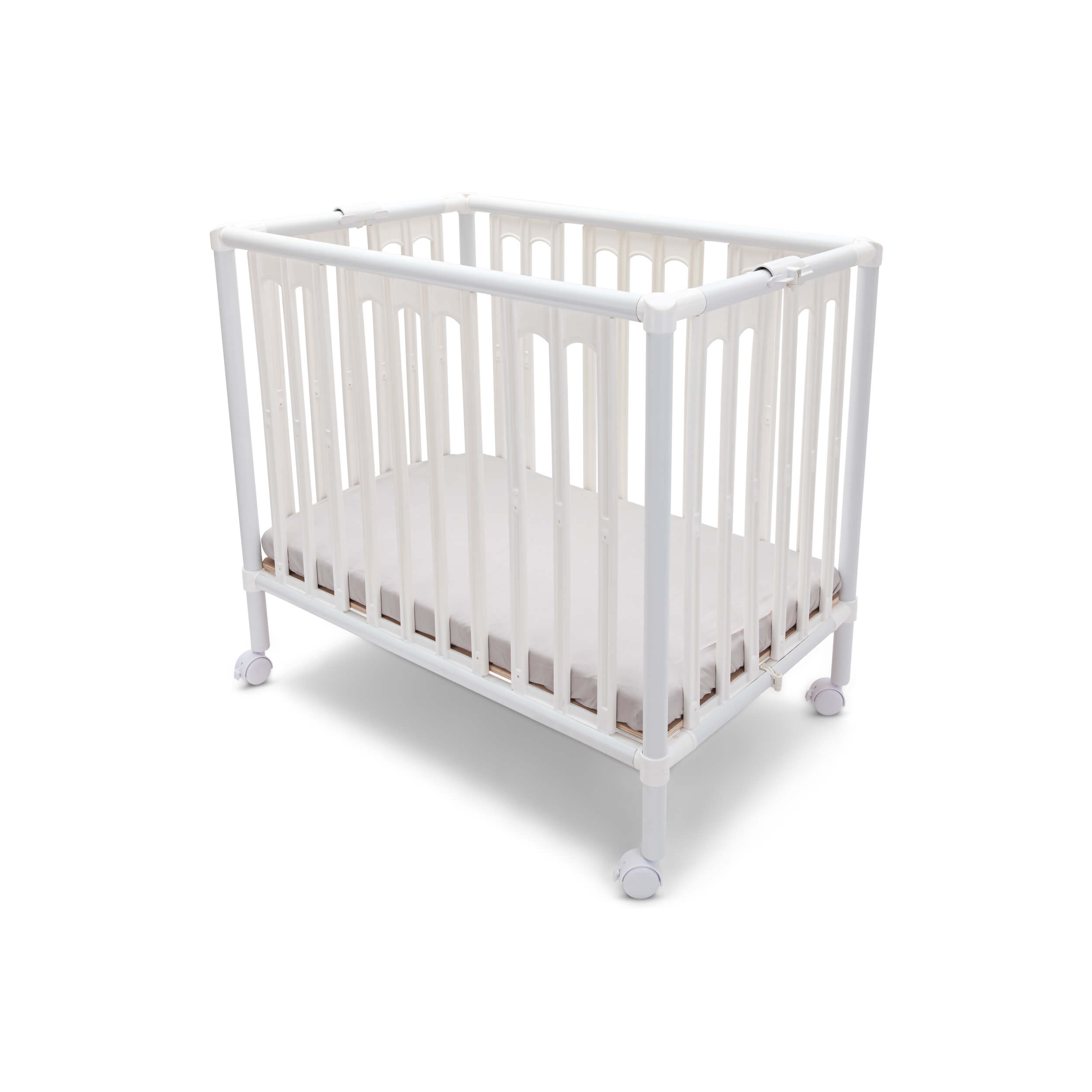 - עריסת התינוק מפלסטיק מוקשח בעל רגליים רחבות ועבות למניעת שבר באזור הגלגל.