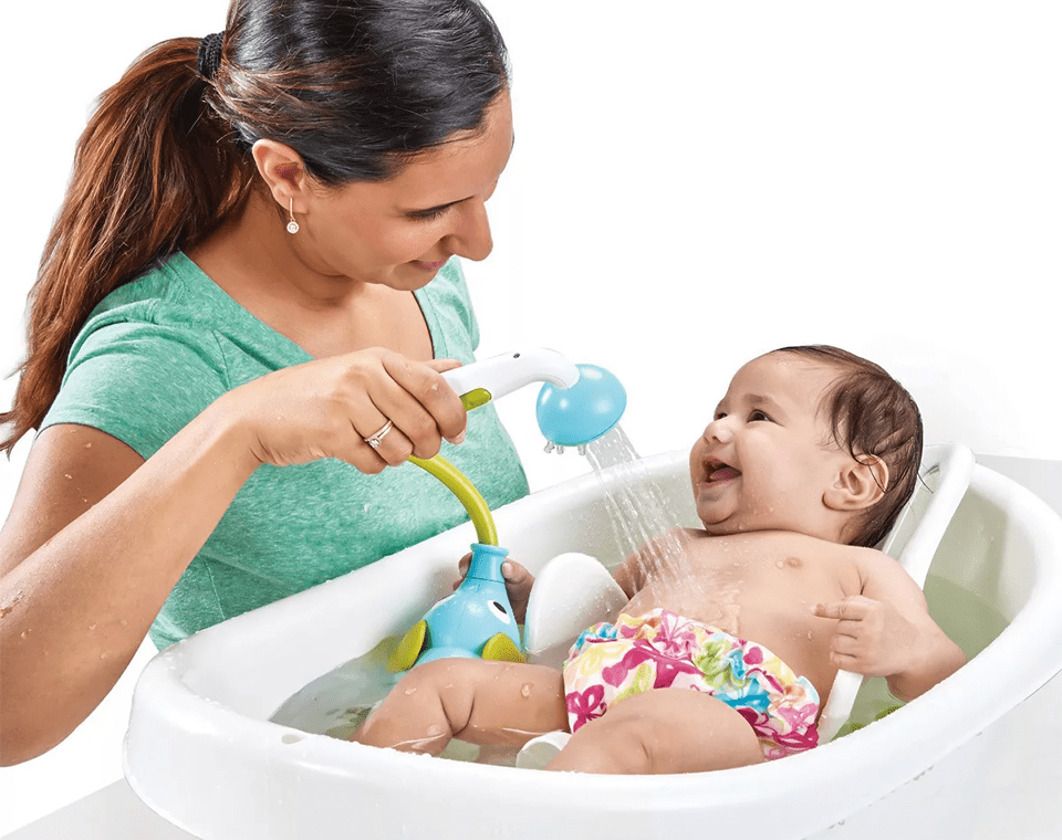 - משאבה בצורת פיל המופעלת ע״י 4 סוללות וצינור גמיש למקלחון המזליף מים בזרם עדין ומאפשר ניקוי התינוק בצורה בטוחה ונעימה.